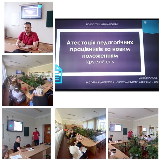 21 вересня 2023 року відбувся круглий стіл з питань якісної організації атестаційного процесу в Новоселицькому ліцеї №1. В ході зустрічі заступниками директора ліцею Яною Дисар та Сергієм Власовим із педагогами детально обговорено зміст нового положення про атестацію. Акцентовано увагу на: